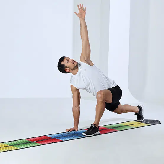 El PATmat de FLEXVIT es una esterilla de entrenamiento multifuncional que combina análisis, control y ejecución en un solo producto. Diseñada para entrenadores, fisioterapeutas y deportistas, permite un trabajo preciso de movilidad, postura y coordinación, ideal tanto para sesiones individuales como para clases colectivas u online.