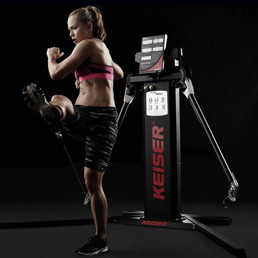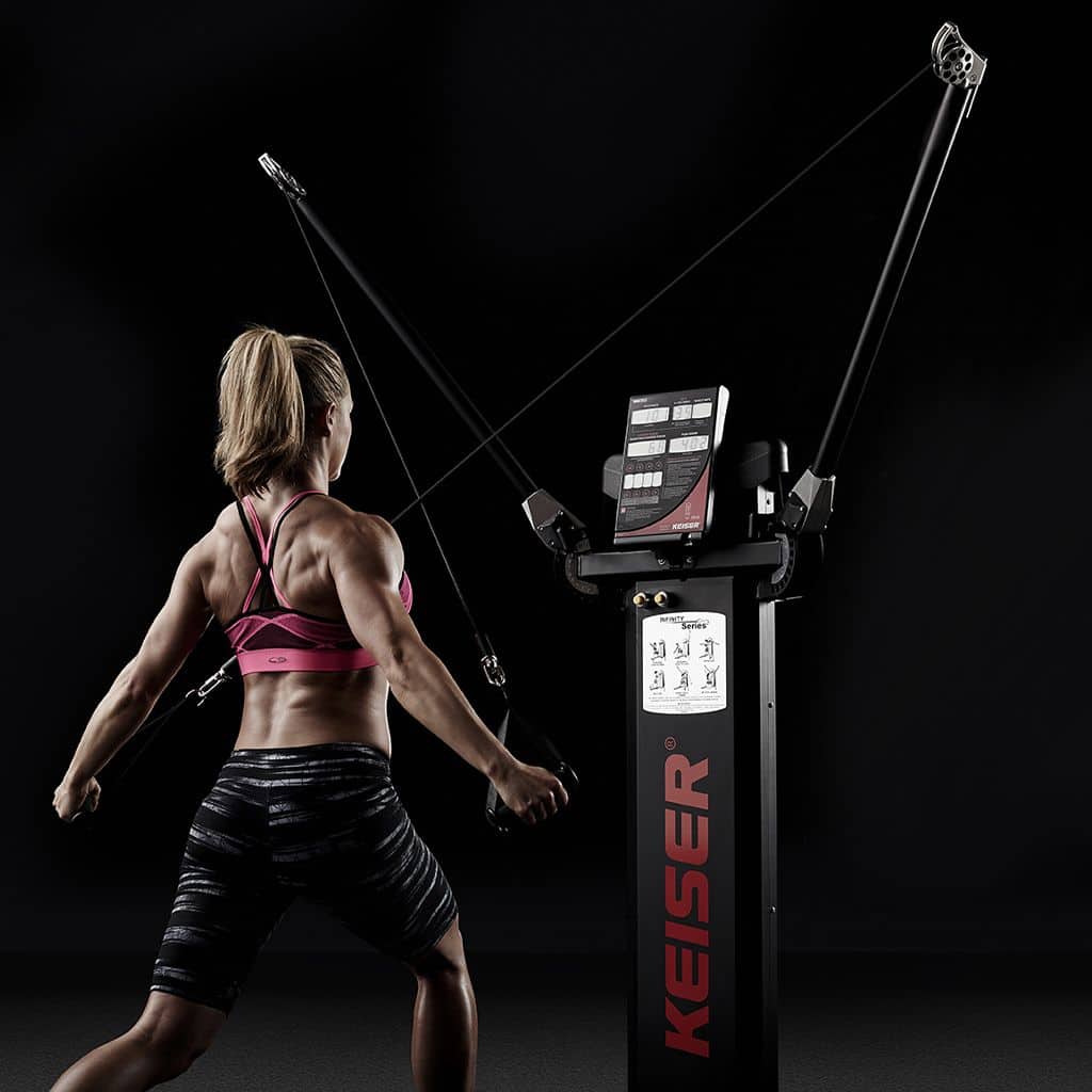 La Keiser Infinity Functional Trainer es una solución completa de entrenamiento de fuerza funcional, que utiliza un sistema de resistencia neumática. Este tipo de resistencia posee la peculiaridad que, gracias a un compresor de aire, ajusta la misma de forma estable durante todo el rango de movimiento.